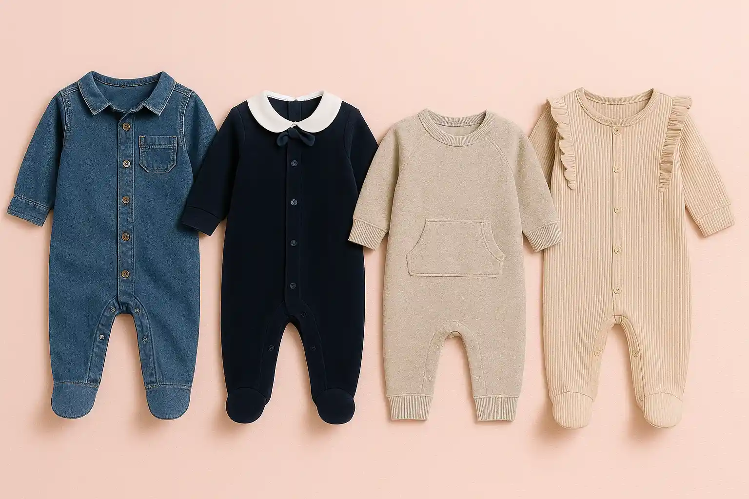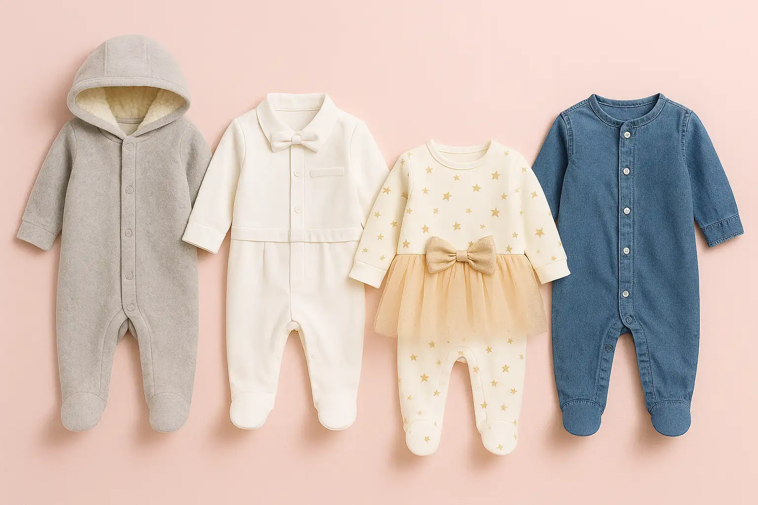 برای نوزادان باید به جنس پارچه، ضد حساسیت بودن و راحتی لباس توجه ویژه داشت. پارچههای نخی و نرم بهترین انتخاب هستند و دوخت باید ظریف و بدون زبری باشد. همچنین لباس باید امکان تعویض سریع و آسان داشته باشد.