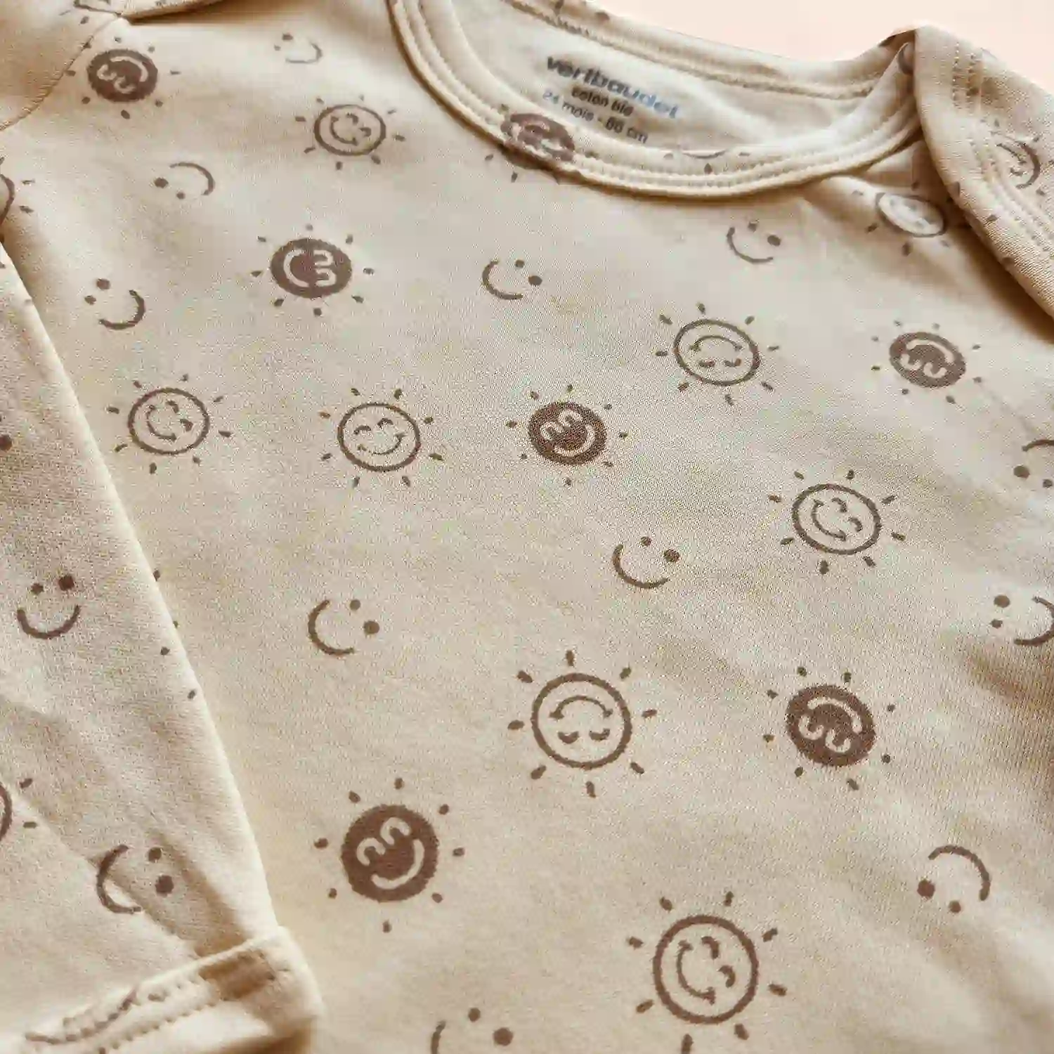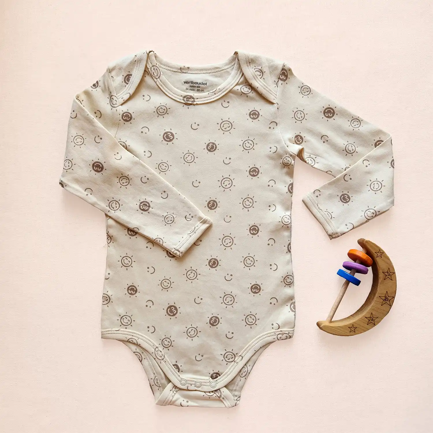 بادی آستین بلند طرح خورشید خندان رنگ کرم برند Vertbaudet