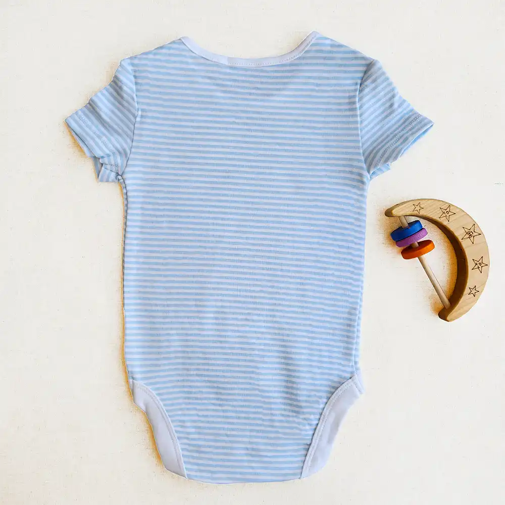 بادی آستین کوتاه وارداتی طرح راه راه سفید و آبی روشن کد ۱۰۱۷۰