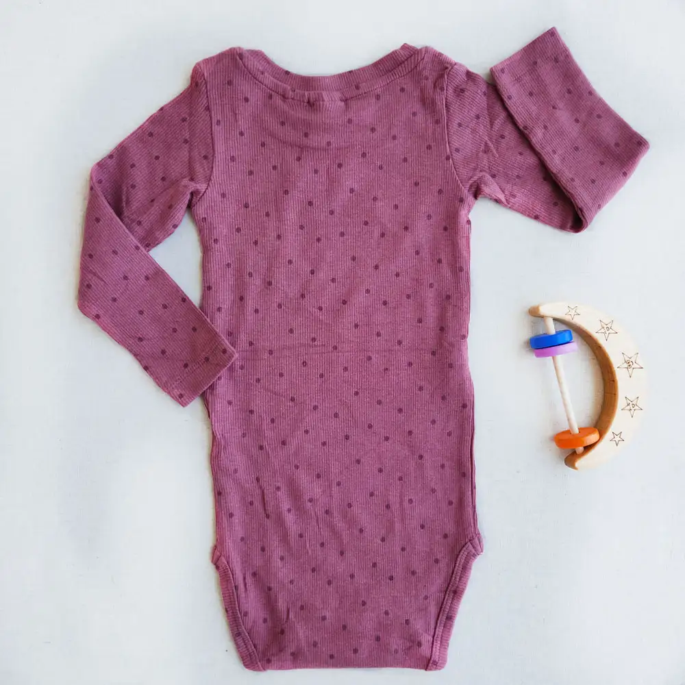 اگر به دنبال یک انتخاب دخترانه، لطیف و در عین حال کاربردی هستید، بادی آستین بلند کبریتی طرح خالدار برند Name It گزینهای بینقص برای کمد نوزاد شماست. این بادی با رنگ صورتی دلنشین و پارچهی بسیار نرم، هم ظاهر جذابی دارد و هم هنگام لمس حس لطافت بینظیری را منتقل میکند. طراحی خالخالی ریز داخل پارچه، حس بازیگوشی کودکانه را در کنار سادگی زیبا تداعی میکند. این لباس با طراحی زیر دکمهای، تعویض آسانتری فراهم میکند و بهخاطر قابلیت کشسانی بالا، راحتی نوزاد شما را در تمام طول روز تضمین میکند.