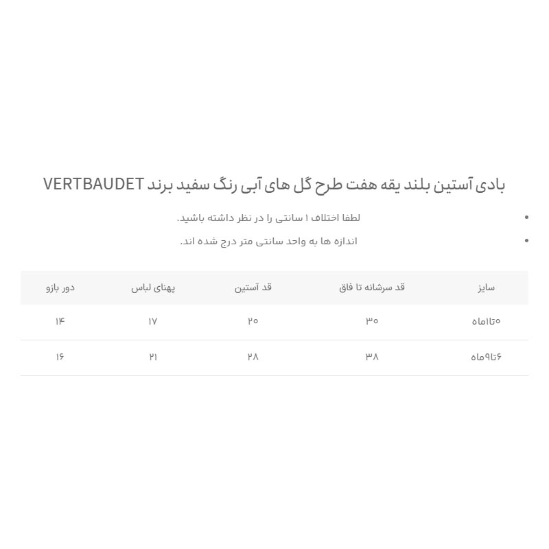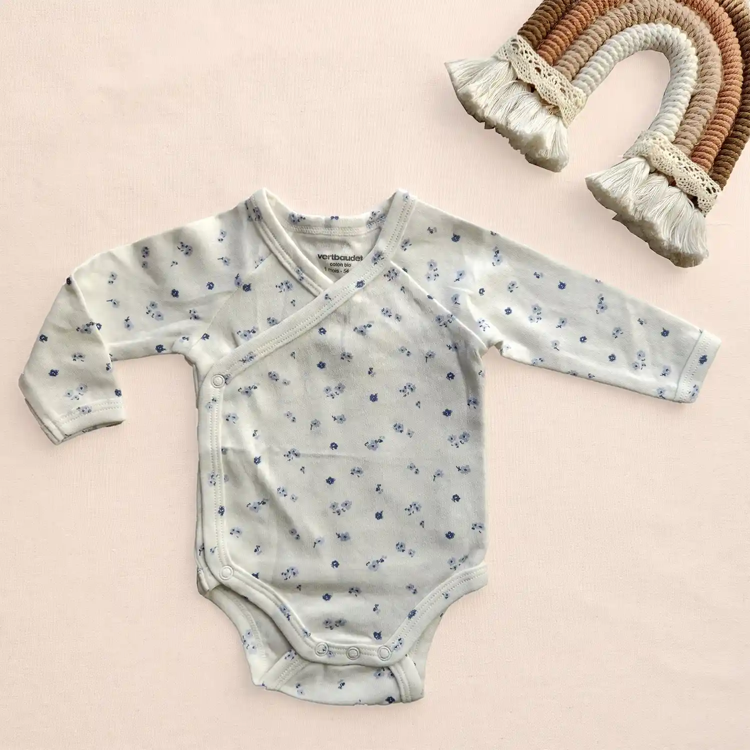 بادی آستین بلند یقه هفت گل های آبی رنگ سفید برند Vertbaudet