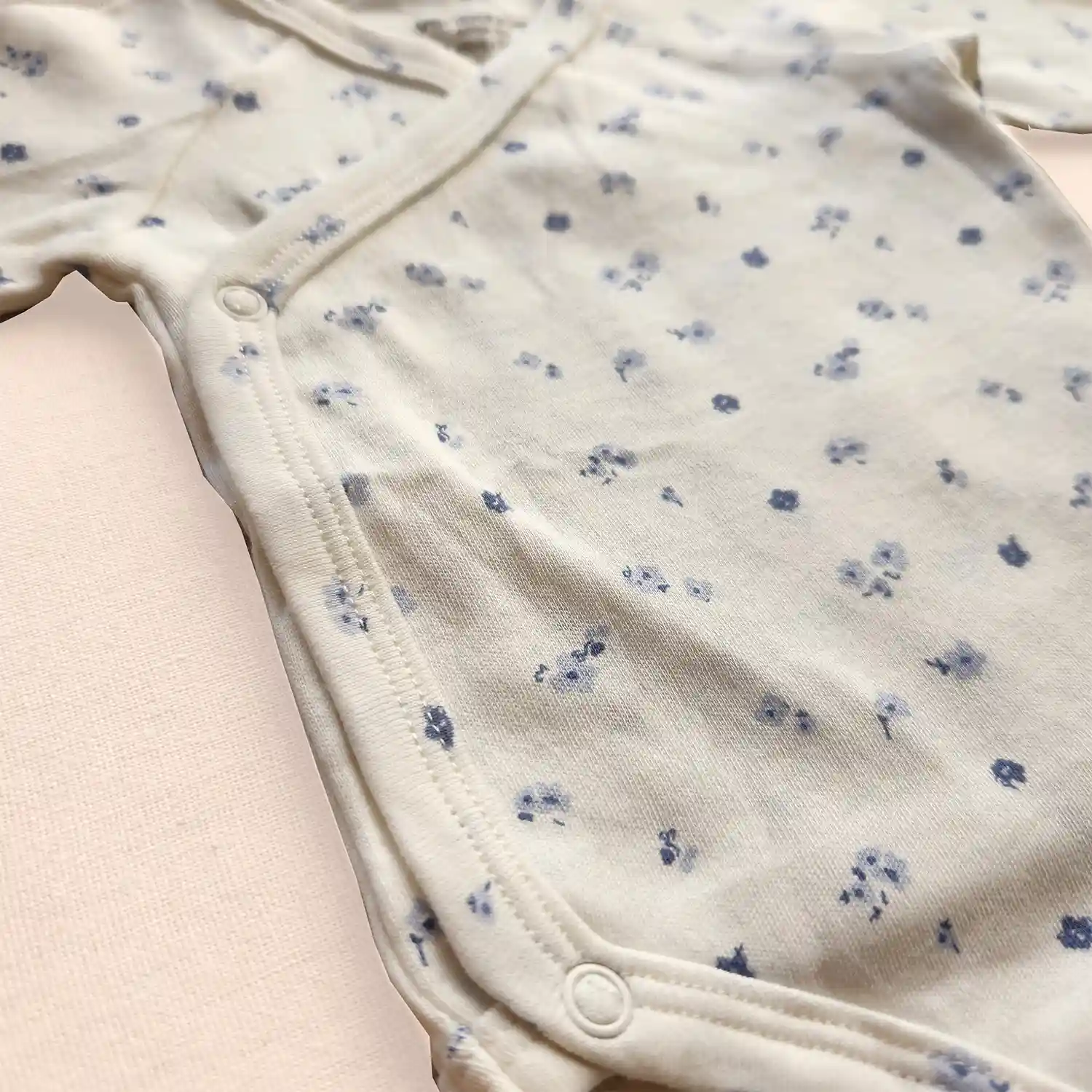 بادی آستین بلند یقه هفت طرح گل های آبی رنگ سفید برند Vertbaudet