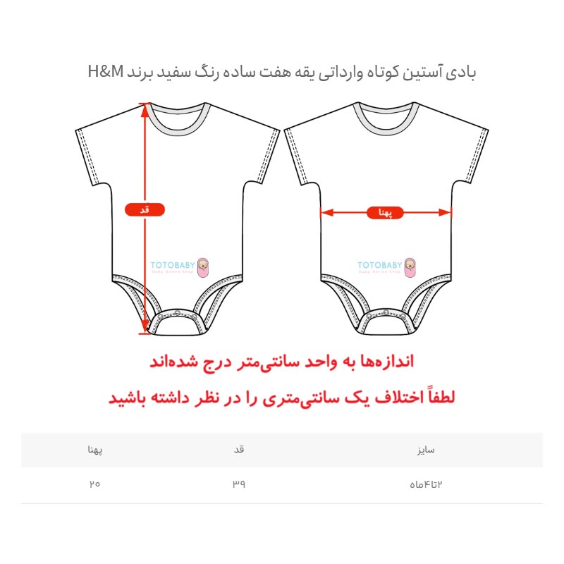 بادی آستین کوتاه وارداتی یقه هفت ساده رنگ سفید برند H&M