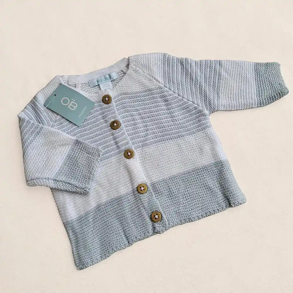 ست ۴ تکه وارداتی ژاکت و شلوار بافت به همراه کلاه و دستکش رنگ سفید آبی برند اوبیبی یک انتخاب لوکس و اورجینال برای نوزادان است. این ست زیبا تولید کشور فرانسه بوده و بافت نرم، لطیف و کاملاً استانداردی دارد که خیال شما را از بابت کیفیت راحت میکند. ترکیب رنگ سفید و آبی جلوهای ظریف و جذاب ایجاد کرده و برای استایل روزمره و مهمانیهای نوزاد بسیار مناسب است.