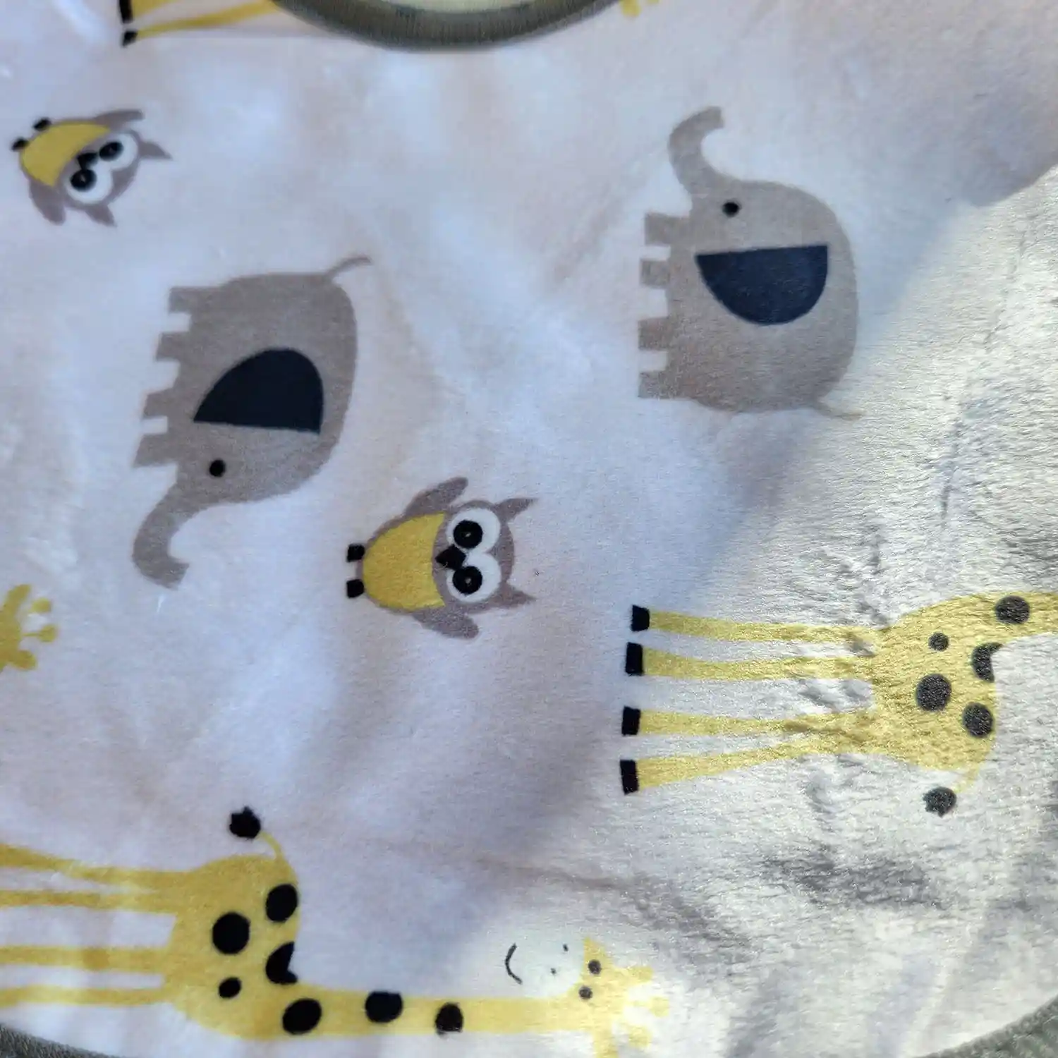 🦉🐘 پیشبند نوزادی طرح جغد و فیل رنگ سفید – پر از جزئیات بامزه و کودکانه