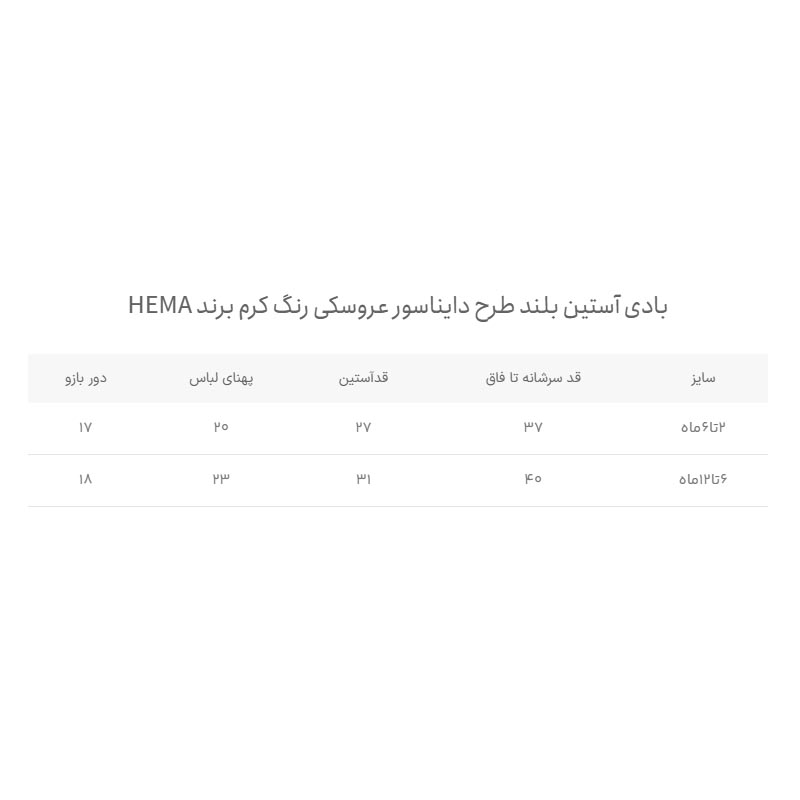 بادی آستین بلند طرح دایناسور عروسکی رنگ کرم برند HEMA