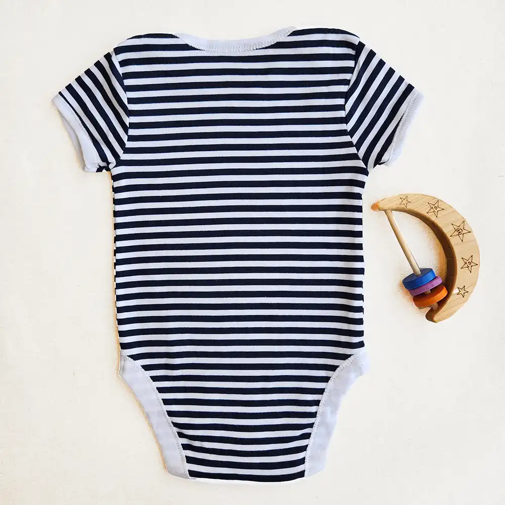 بادی آستین کوتاه وارداتی طرح راه راه سفید و سورمه ای کد ۱۰۱۷۱