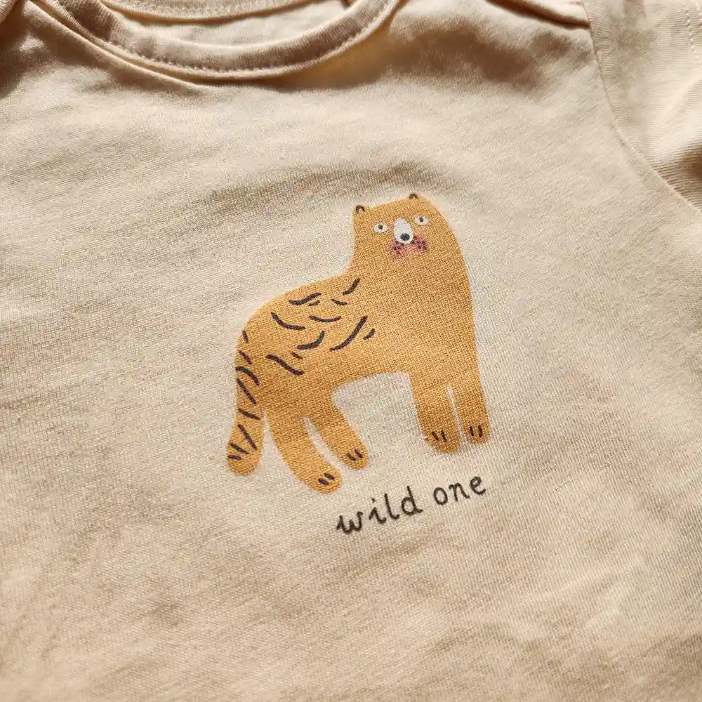 بادی آستین کوتاه وارداتی طرح ببر رنگ کرم برند Sinsay