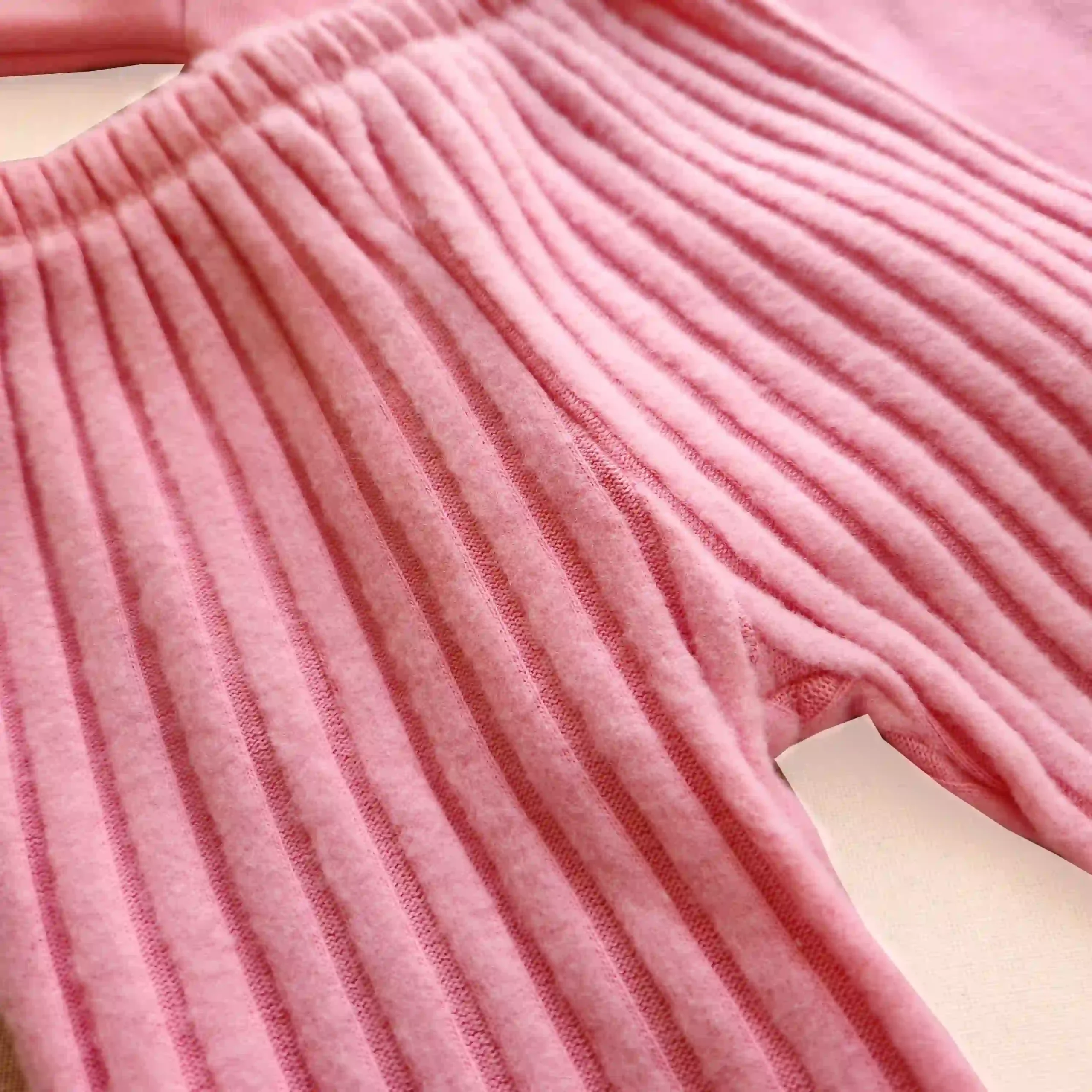 🌸 ست دورس و شلوار حولهای دخترانه مدل گلدوزی رنگ صورتی (وارداتی از ترکیه)