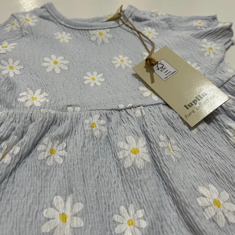 سارافون نوزادی مدل چین دار موسلین طرح گل بابونه برند لوپیلو