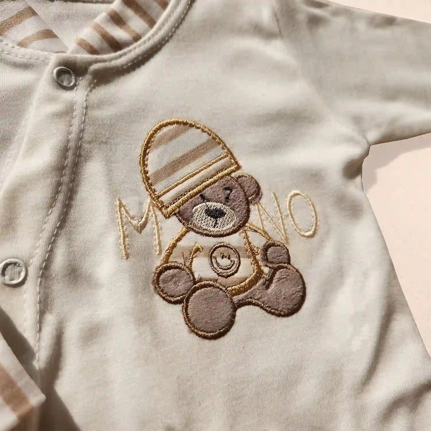 ست ۳ تیکه وارداتی ترک بادی آستین بلند، شلوار جوراب دار و سوئیشرت طرح تدی رنگ سفید لیمویی برند Pookie