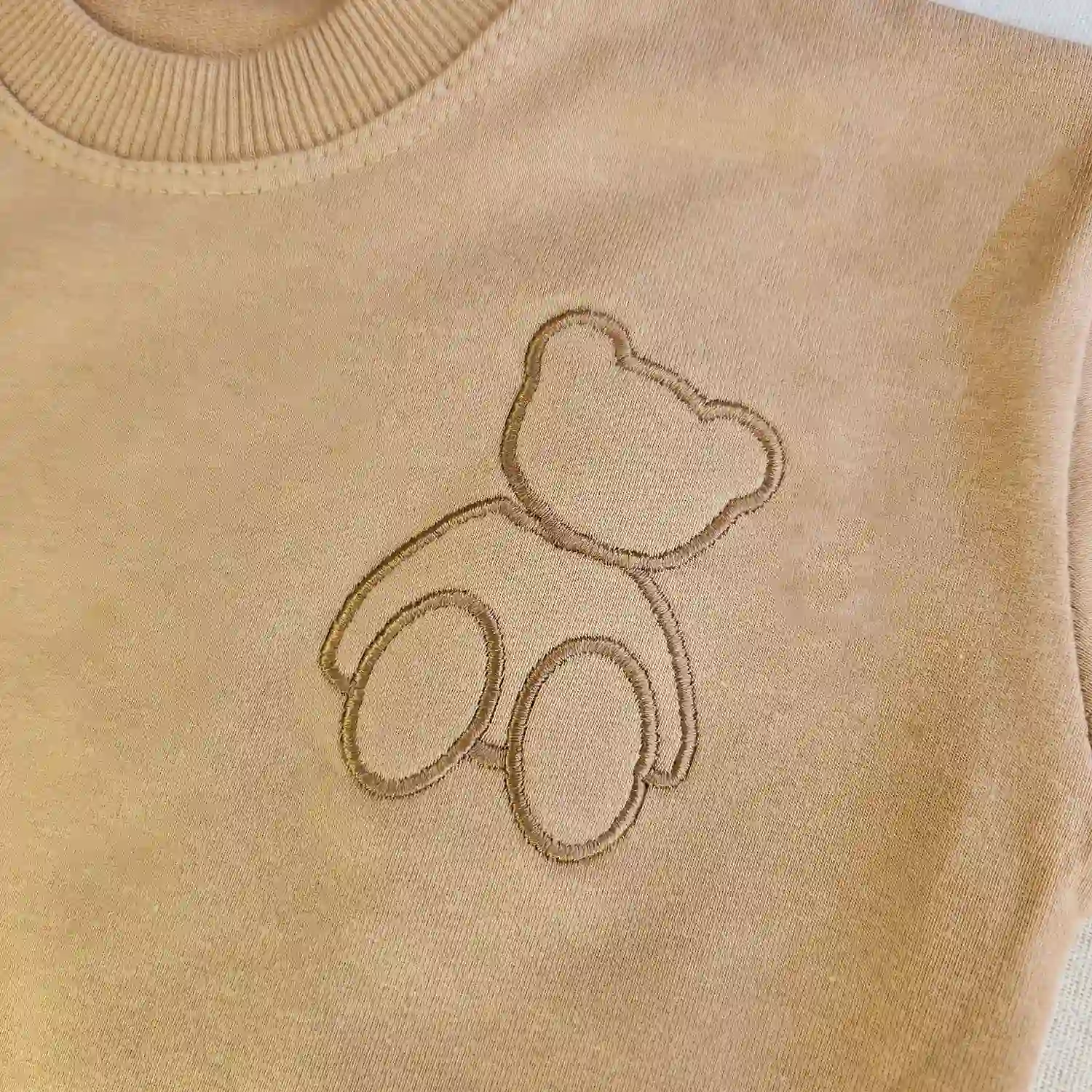 ست ۳ تیکه وارداتی ترک بادی آستین بلند، شلوار جوراب دار و سوئیشرت طرح تدی رنگ سفید لیمویی برند Pookie