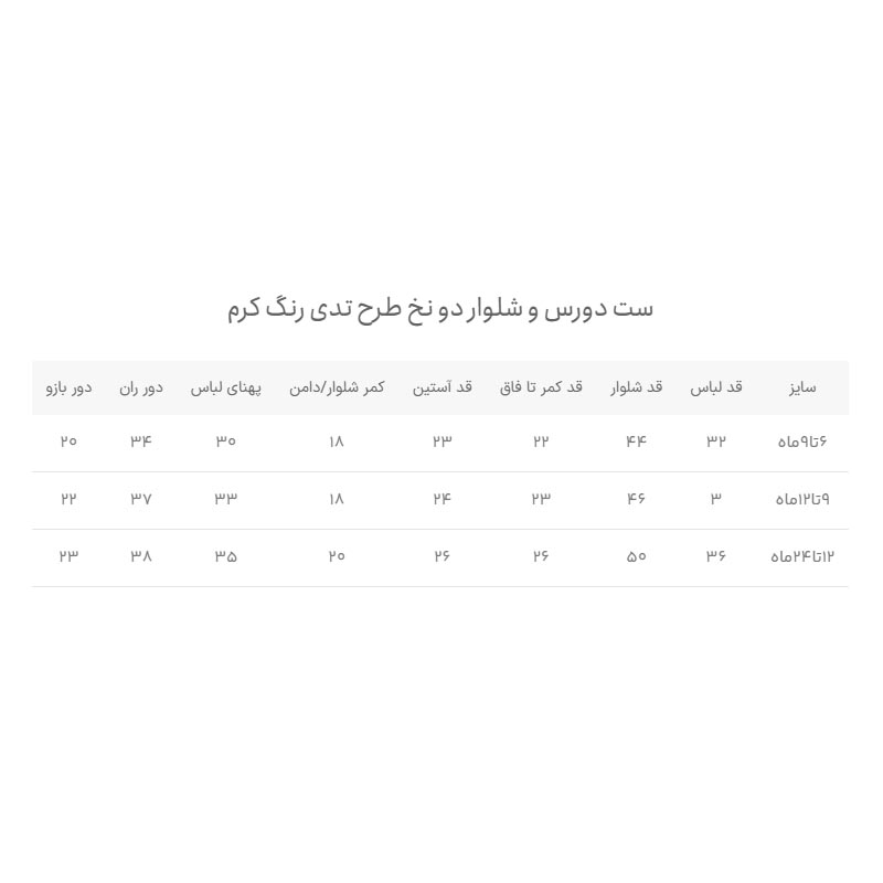 ست دورس و شلوار دو نخ طرح تدی رنگ کرم
