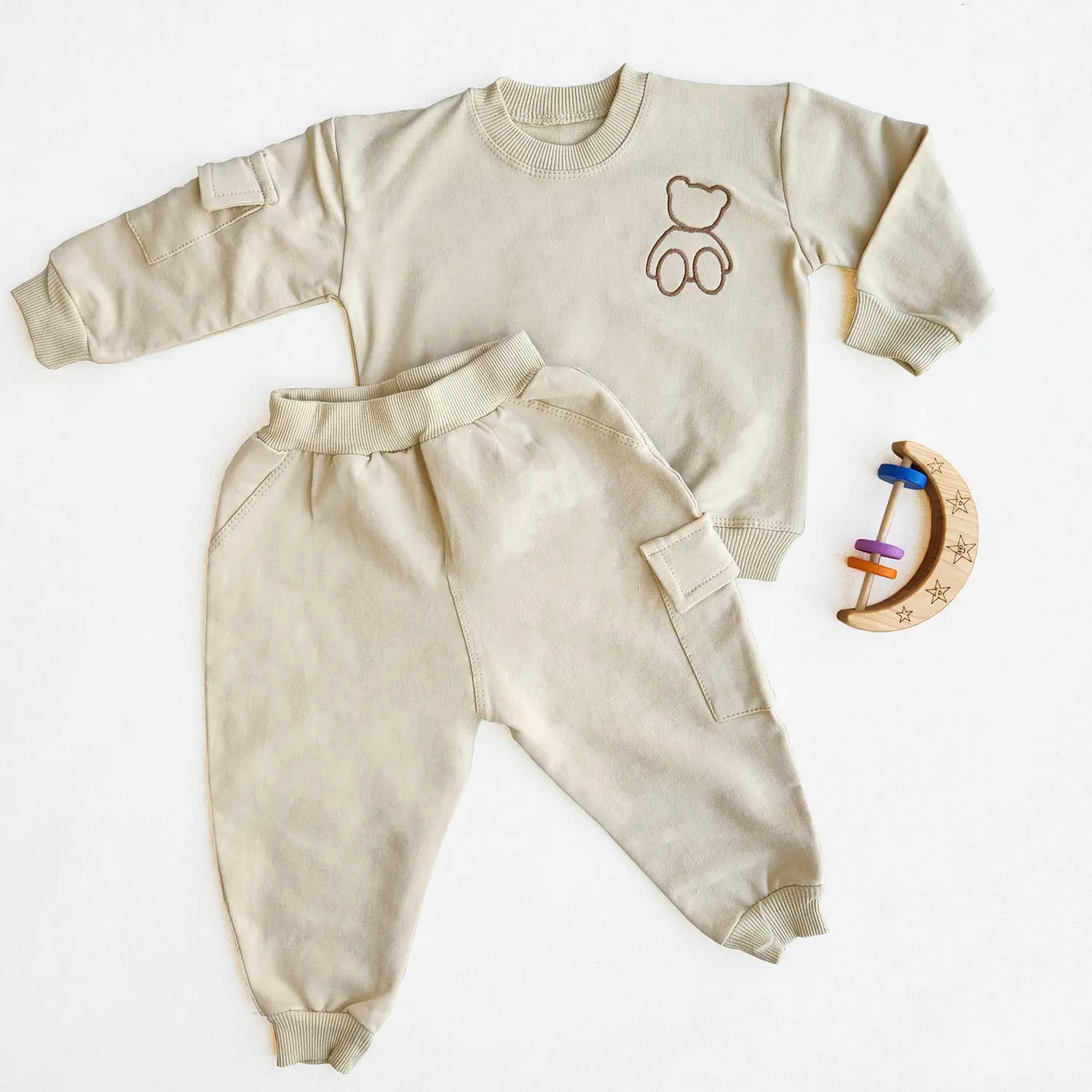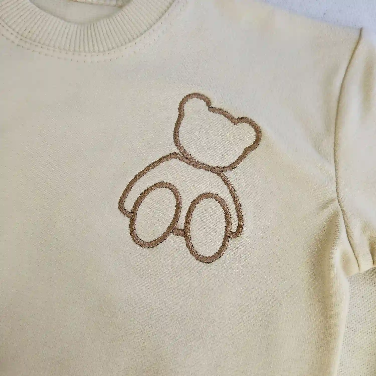 ست ۳ تیکه وارداتی ترک بلوز و شلوار و کلاه کبریتی طرح خرس چاپی رنگ قهوه ای خردلی برند Necixs