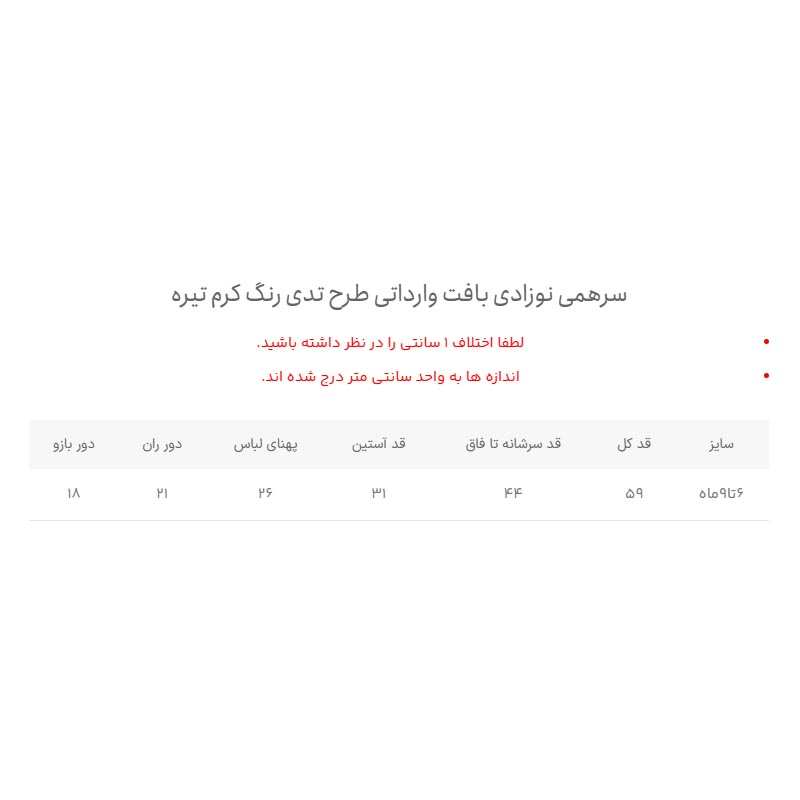 این محصول وارداتی و باکیفیت بوده و با بافت نرم و لطیف خود، گرمای مطلوبی را بدون ایجاد سنگینی برای نوزاد فراهم میکند. طراحی یکسره باعث راحتی بیشتر نوزاد شده و آزادی حرکت را حفظ میکند. اگر به دنبال مدلهای گرمتر هستید، پیشنهاد میکنیم مجموعه سرهمیهای زمستانی را ببینید و برای مشاهده تنوع کامل، از صفحه سرهمی ها بازدید کنید.