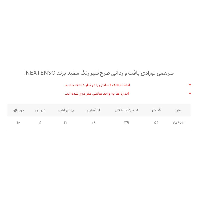 سرهمی نوزادی بافت وارداتی طرح شیر رنگ سفید برند Inextenso