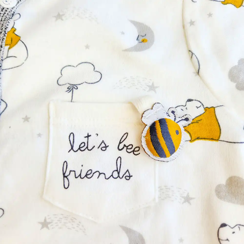 سرهمی نوزادی وارداتی دارای جوراب استپ دار طرح BEAR HUGS رنگ طوسی برند پریمارک