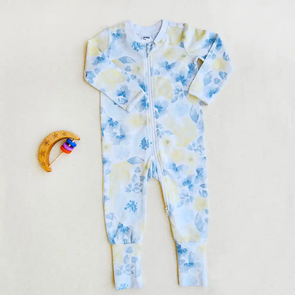 سرهمی دوزیپ وارداتی دارای جوراب استپ دار قابل تغییر طرح گل آبرنگی برند Anko