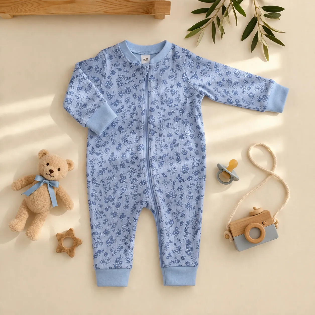 سرهمی دو زیپ وارداتی طرح گل رنگ آبی برند H&M با یه طراحی ظریف و دخترونه 🌸💙، هم خوشاستایله هم خیلی راحت 👌