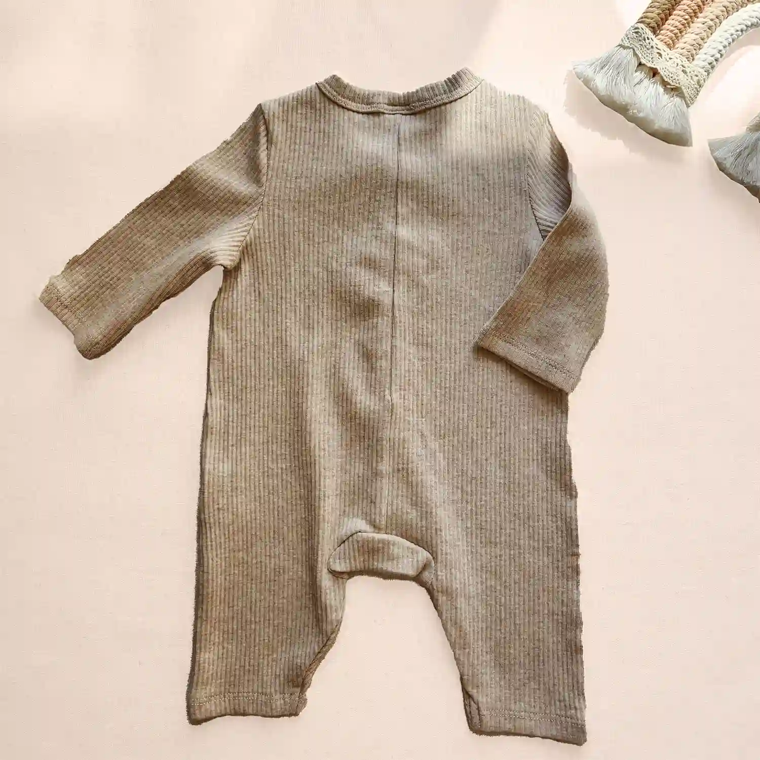 سرهمی نوزادی وارداتی دارای جوراب استپ دار طرح BEAR HUGS رنگ طوسی برند پریمارک
