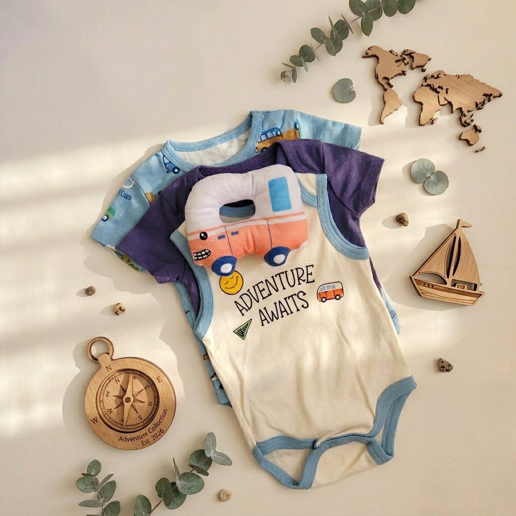پک ۳ تایی بادی آستین کوتاه پسرونه وارداتی طرح مینیبوس به همراه عروسک خواب یه انتخاب دوستداشتنیه برای مامانایی که هم به راحتی اهمیت میدن هم به خوشگلی 😍🚌