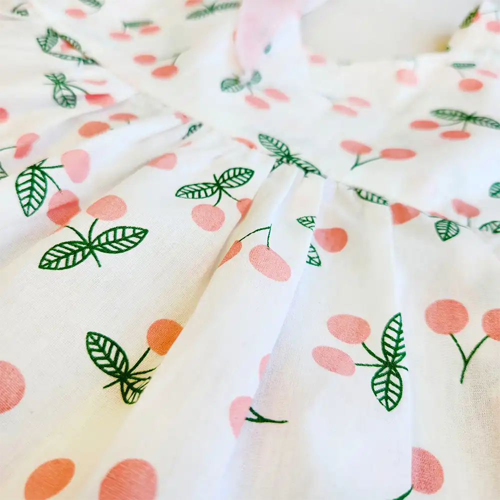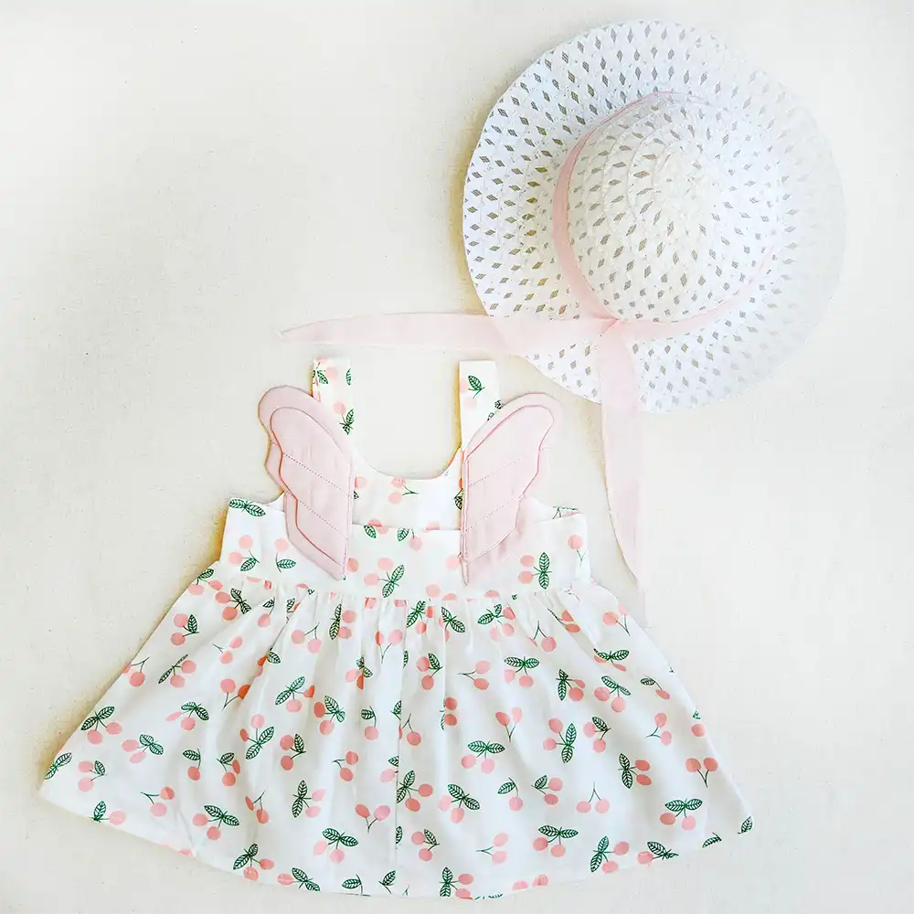 پیراهن دخترانه بالدار به همراه کلاه طرح گیلاس