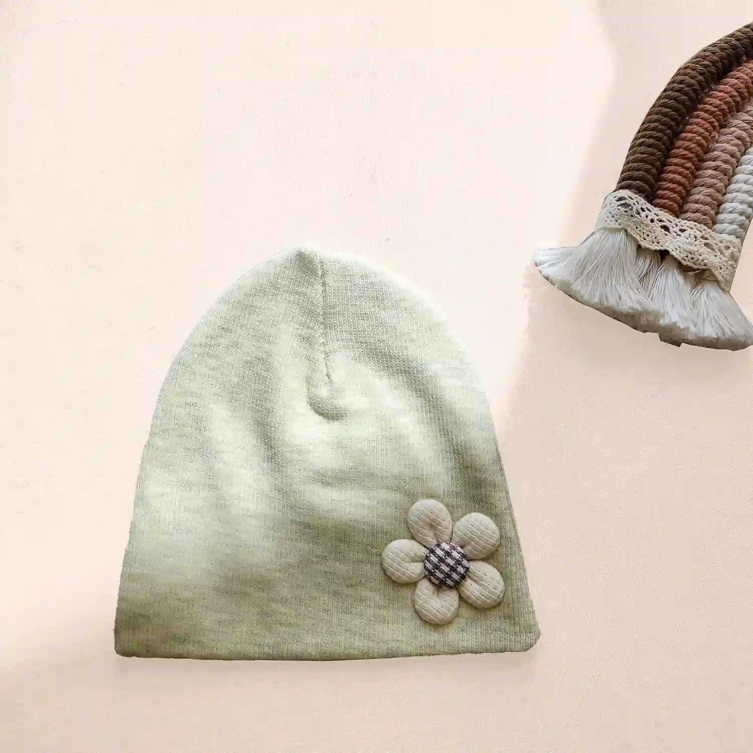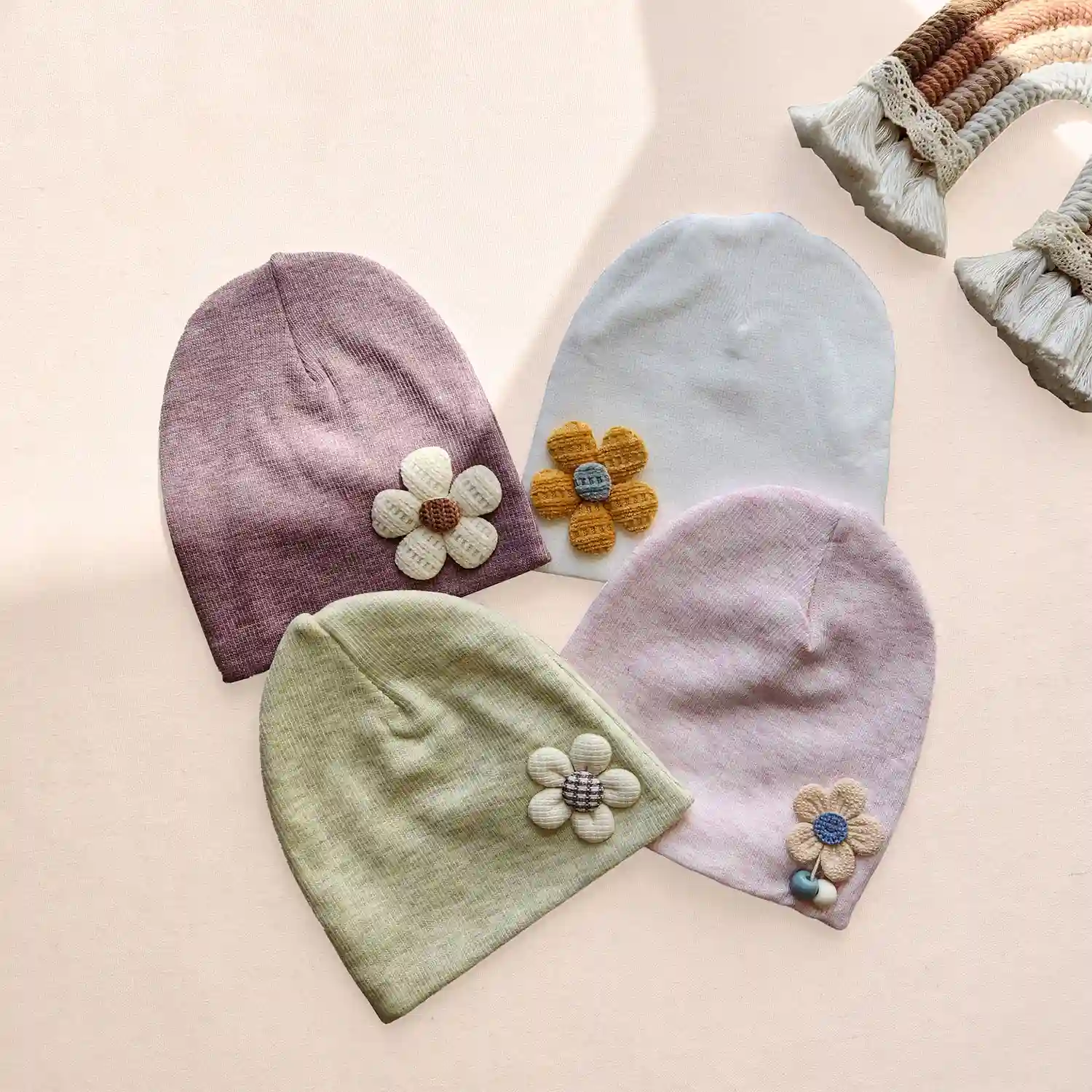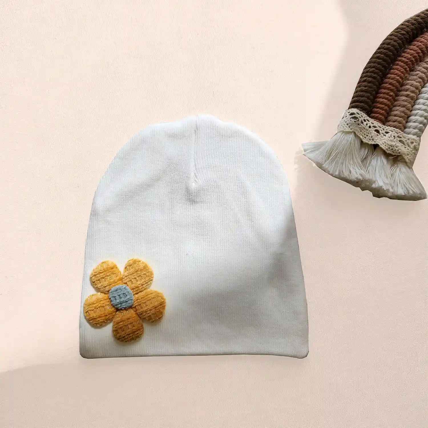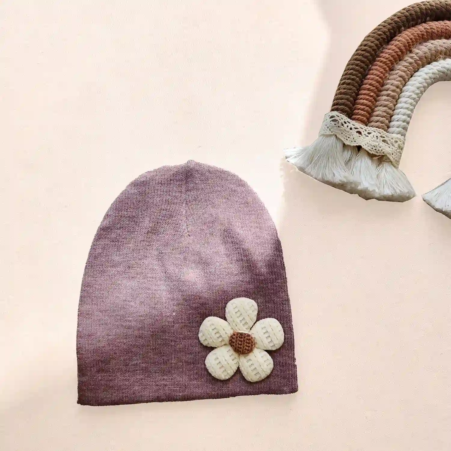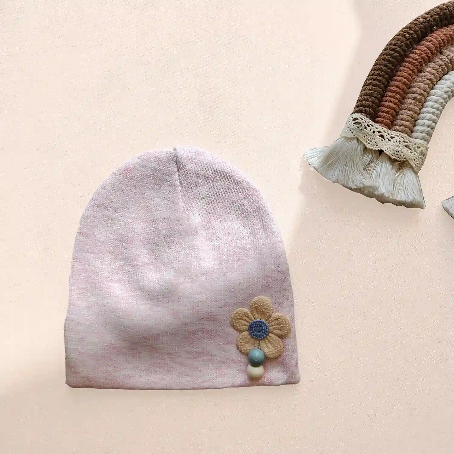 کلاه نوزادی کشبافت مدل گل دکمه ای
