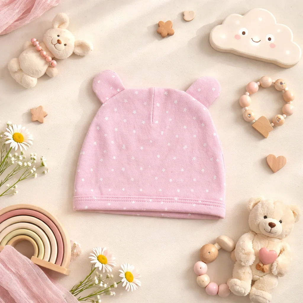 کلاه نوزادی گوش دار طرح ستاره رنگ صورتی کد 10530